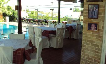 Khách có thể thưởng thức những món ăn ngon tại nhà hàng hoặc dùng bữa nhẹ tại quán cà phê. Nhà khách này còn cung cấp dịch vụ phòng (có giới hạn thời gian). Còn gì tuyệt vời hơn việc thư giãn cùng với ly nước giải khát yêu thích của mình tại quầy bar/khu lounge hoặc quầy bar bên hồ bơi sau một ngày dài. Khách có thể dùng bữa sáng buffet (có phụ phí) từ 8:30 đến 10:00 hàng ngày.