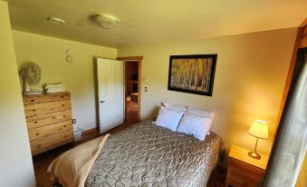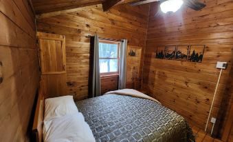 Nice updated cabin. Clean and well equipped. Tucked away in the woods down a long gravel driveway. Not very scenic location, but accetable given the price point.