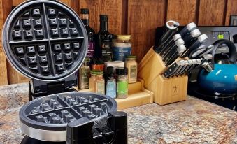Our cabin is compact, and rustic, but luxurious. You should find everything you need in the kitchen. If something is missing, please let us know so that you will find it next time. We may even be able to get it to you for this stay. If you need to purchase a spice or ingredient, we welcome you to add it to the stock. You can start your day by making waffles, or maybe a smoothie to take on your bike ride or hike. Later, cook up a smooth soup with the immersion blender. There are so many other small comforts of home.
