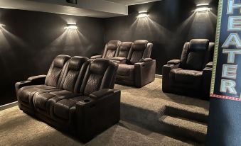 First of all, Blueberry Lane and Deer Trail Loop to get there, beautiful!! Then a sweet spot right near Waldo and Plymouth with excellent relax space upstairs and fun time downstairs. We utilized the fire pit as well! The theater room was exceptional, and the recliners…so comfy. Highly recommend and plan to stay here next visit.