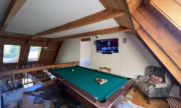 Boasting 10 acres, our Northern Quarters Estate, strategically positioned between Mount Snow and Stratton, is an ideal retreat for large families, groups, or corporate events. Featuring two neighboring residences with a combined 9 bedrooms, 16 beds, two well-equipped kitchens, and trio of inviting fireplaces, we assure a comfortable stay. Heated floors, a hot tub, oversized swimming pool, and an exclusive game room with a pool table add to the entertainment. A fitness center is also available.