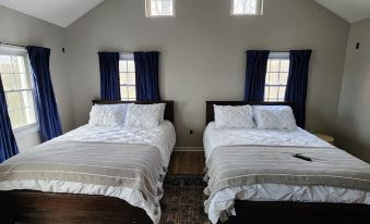 This beautiful farm house was once a stagecoach inn that served travelers in the days of yesteryear between Lebanon and Springboro. It was saved from demolition and moved from the outskirts north of Lebanon to our family farm adjacent to the Red Stewart Airfield. This home has full airport access for those that may be flying into town as well as traditional gravel driveway for our car travelers.