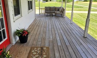 Some of the wonderful aspects of this home outside of the many attractions nearby is the beautiful wrap around porch and gorgeous farmland views. Both the sunrises and sunsets are to die for. About pets:Pets allowed: limit 4 total.About checkOut:Check out before 11:00 AM.About children:Children allowed: ages 0-17.About customRules:Quiet Hours from 11 PM - 6 AM - Absolutely no loud music or outside gatherings during this time unless otherwise approved by us..Please remove shoes while in the house..About checkIn:Check in after 3:00 PM.About smoking:Smoking is not permitted.About minBookingAge:Minimum age to rent: 18.About events:Events allowed: family gatherings, birthday parties, weddings.Maximum event attendees: 40,This does not allow more than 11 overnight guests..