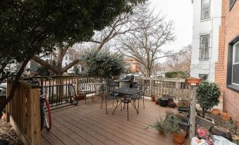 Location, style and eco friendly blend perfectly in this solar powered 2nd floor walk up Capitol Hill 1 bedroom. This home features a custom furnishings by the stylish West Elm team and accents of the vintage charm of Capitol Hill. An eat in modern kitchen with stainless steel appliances, central air conditioning, queen-sized bed, futon sofa bed in the living room, in-unit washer and dryer, and hardwood floors make this an easy place to call home. Enjoy the gorgeous front deck or wander over to the famous Eastern Market and World Class restaurants of Barracks Row Main Street.