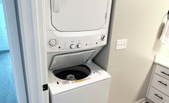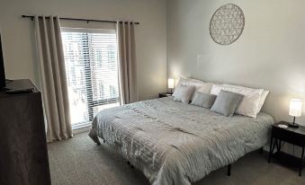 Very nice and clean! Lots of kitchen accessories for making meals. Comfortable bed and couch. Streaming services on both tv's. Wifi, gym access, close to the freeway.