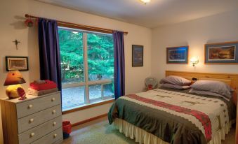 We really enjoyed our stay here! Their home was cozy, clean, nicely decorated with bear themes, comfortable couches & beds, fully equipped kitchen, and nature all around through large windows. Front porch great for stargazing, back deck spacious, and fire pit with plenty of wood to enjoy. We especially loved our bear sighting near their property! Chris was a great host.