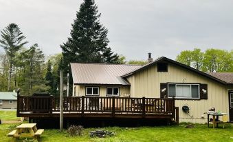 Camp Castaway is a beautiful property located in the heart of all that The Adirondacks have to offer! This 3 bedroom, 2 bath home is located right on the Old Forge/Thendara border. Minutes away from all area attractions, shops, rental shops, and restaurants. Great centralized location for hiking, fishing, biking, shopping, kayaking, boat rentals, canoeing, eating, drinking, and more! Our Camp is great for entertaining. Large open concept living area, beautiful backyard with large area for backyard fun and games. HOT TUB under screened in roof, Wrap around deck, pop-up screen room, weber BBQ, fire pit, lounge chairs. Each bedroom is equipped with a wall mounted smart TV. AC in master and King bed guest room as well as living room. Family room has a 60" smart TV with sound bar audio system. Portable Bluetooth speaker provided. Kitchen is equipped with a coffee maker, keurig, toaster, microwave, pots, pans, plates, bowls, drink-ware, utensils, refrigerator, dish washer, stove/oven etc...