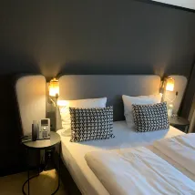 Haben auf der Durchreise hier als Familie in einer "Familien-Suite" übernachtet. Zimmer war relativ schmal und 2 große Betten nebeneinander. Somit keine Privatsphäre als Eltern. Aber alles ordentlich und sauber. Ein Restaurant gibt es im Hotel selbst nicht, dafür liegt es aber sehr zentral und man hat viele Optionen in direkter Nähe. Eine Bar wiederum gibt und die war gar nicht schlecht. Das Frühstück am nächsten Morgen war ordentlich und vollkommen ausreichend. Leider aber recht wenig Plätze, so dass wir auf Barhockern saßen, was mit Kindern ein bisschen schwierig war. Wir würden wieder kommen.