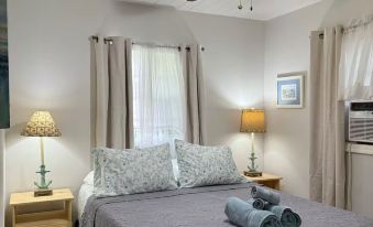 Cottage A is a cozy (400 sq ft) 2-BR with 1 KING room and 1 bunk bed room (single-over-full); as well as full bath and stocked kitchen. Each BR has an AC unit for ease of temperature control.