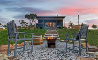 Surrounded by beautiful rolling hills, kangaroos and cows it’s an incredibly peaceful location. We had the most beautiful sunsets and the stars at night are the most incredible I’ve ever seen. Our villa was perfect. Beautifully styled comfortable with all the amenities we needed. Beds were comfy and we were toasty warm. We did the 2 1/2 hour wellness session with Pilates, cold plunge, spa and sauna. We loved it!!!! Alicia guided us thru this session and she was amazing. We also organise catering with Nat and Tammy which made things super easy and all was delucious !!!! Particularly our sit down meal in the shed.