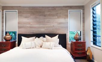 Enter through the double wooden doors onto the polished timber floors; turn left to the luxurious master suite or step down to the right and walk through to the living areas and timber deck looking out to the glorious mountain views.