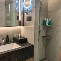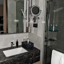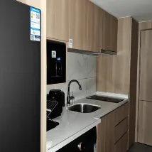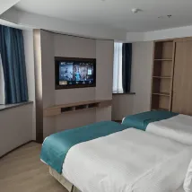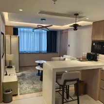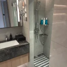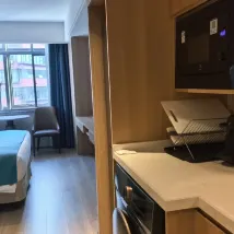 The hotel situated in just couple hundred meters from the MTR station Shenglinmei, 30 mins from the airport by taxi. The room is big and equipped with a microwave oven, a washing machine, refrigerator, etc. The breakfast was quite good