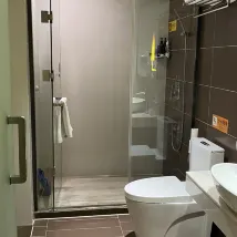 Thuận tiện đi lại, rất sạch sẽ, giường nệm mới và sạch sẽ, dòng nước chảy mạnh, nhân viên lịch sự và dễ thương, dịch vụ rất tốt.