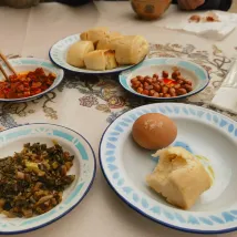 Đồ ăn ngon. Tôi rất thích rau tươi, và họ cho tôi thêm rau miễn phí. Bữa sáng no nê, bữa trưa là mì, và bữa tối là một nồi súp gà thảo mộc thơm ngon.