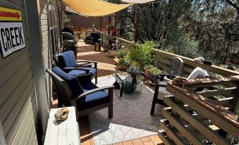 Beautiful property with a clean spacious room. The deck is beautiful with many plants and birds to enjoy. They are located very close (less than a mile) to the national park creek access making it ideal for staying cool on a hot summer day.