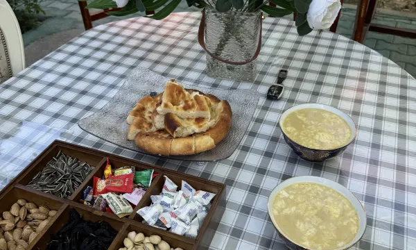是在喀贊其邊下的一個民宿,我們住的這一晚沒有見到老闆,是老闆姐姐接待的,是哈薩克族的姐姐,不會漢語,但是通過手勢和相互的微笑,很順當的辦了入住,小院很漂亮,有葡萄架,第二天早上還給我們準備了早餐,吃起來還挺特色的