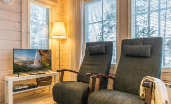 On the covered terrace, you will find a gas grill and garden chairs. In front of the cabin, there is a campfire. The yard also has a spacious parking area with an electric outlet for heating the car. The plot is forested with a rocky shoreline. The terrain consists of moss and bedrock. Lake Kolmiloppi is rich in fish.