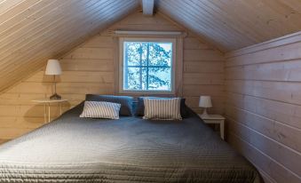 A cozy little log cabin (built in 2015) situated in Ylöjärvi by Lake Kolmiloppi, only 40 km from Tampere. The shoreline has a rocky bottom and deepens quickly. There is a pier with about 2 meters of water depth at the end. Own rowing boat.