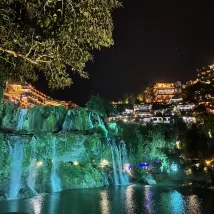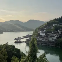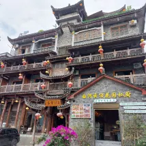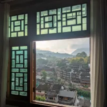 The hotel located near Furongzhen waterfall, and I got room upgrade to see the river view. The hotel also provide 1 ride to pick up at high speed train station and special ticket price to Furongzhen 80 yuan per person. Breakfast is local dish (noodle/wonton/bun/boiled egg and boiled rice. The owner is nice and willing to communicate by we chat or Trip message.
