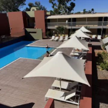 The room was spacious and clean. It is pricy but so are all the hotels at this resort area and there is very little choice if you want a couple of nights at Uluru. The staff at reception were lovely and helpful. I never used the pool. It is right behind the ‘town’ area with restaurants and the mini supermarket so that is convenient.
