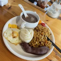 Vì nỗi ám ảnh về Núi Tuyết Ngọc Long nên tôi đã chọn sống ở Baisha và nhà nghỉ chỉ phục vụ bữa sáng này. Không ngờ lại gặp được một người cùng làng! Mặc dù tối hôm trước tôi không ở khách sạn do bị tai nạn nhưng thái độ phục vụ của nhà trọ rất tốt, tôi không những lập tức giúp đổi vé đi Ngọc Long Tuyết Sơn mà còn được liên hệ đón- thức dậy lúc 1 giờ đêm! Sáng hôm sau mệt và đói nên ăn bún nóng! Bắt tay vào hành trình chữa bệnh đến Vân Nam!