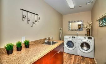 This home has a kitchen with stainless steel appliances and all the cookware/utensils you will need to cool a meal. It comes stocked with sheets, towels, blankets, TV, Wi-fi, and games to make you feel at home. There is also a washer, dryer, iron, and ironing board.
