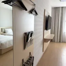 Dịch vụ năm sao! Các cô gái trẻ và nhân viên bảo vệ rất nhiệt tình! Bữa sáng gồm mì thịt bò nóng, trứng và các món ăn kèm. Phòng tắm rất sạch sẽ! Khăn tắm và khăn mặt chỉ dùng một lần. Khi bạn gọi đồ ăn mang về, một chú robot dễ thương sẽ giao đồ ăn đến. Máy giặt và máy sấy hoàn toàn tự động cho phép chúng tôi giặt quần áo mỗi ngày. Bàn ghế trong phòng cũng rất tiện lợi.