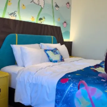 Tôi chọn ở tại khách sạn Spaceship vì tôi đã đến Spaceship Paradise. Thật bất ngờ, trải nghiệm khá tốt. Dịch vụ bồi bàn rất tốt và cô chủ nhận phòng rất chu đáo. Trang trí phòng giống như khách sạn dành cho cha mẹ và con cái, dễ thương và phù hợp với trẻ em. Tuy nhiên, phòng rất sạch sẽ và đồ vệ sinh cá nhân đầy đủ. Đặc biệt phòng có ánh sáng tốt và ban công nhỏ view rất đẹp. Điều thuận tiện nhất là nếu bạn mua vé ăn thỏa thích, bạn có thể vào công viên trước một giờ. Ngoài ra, bạn có thể tiết kiệm rất nhiều thời gian đi lại bằng cách đi bộ qua lối vào của khách sạn. mất năm phút để đi xe buýt đưa đón của khách sạn đến Vương quốc Đại dương. Đồ lưu niệm ở cửa hàng lưu niệm cũng rất dễ thương, bạn có thể mang về làm quà cho gia đình, bạn bè. Buffet có nhiều món và khẩu vị phong phú. Người phục vụ rất nhiệt tình và chuyên nghiệp. Các món ăn được bổ sung nhanh chóng. Sẽ tốt hơn nếu bạn dẫn theo gia đình và trẻ em. đề nghị ở lại tàu vũ trụ để tránh được nhiều rắc rối. Sau khi trả phòng, chỉ cần ném thẳng thẻ phòng vào hộp trả phòng. Tôi rất thích kỳ nghỉ của mình và sẽ mang theo con vào lần sau.