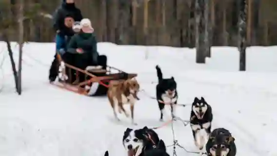 Tham quan trang trại chó Husky, tận hưởng chuyến đi xe trượt tuyết ngắn cùng những chú chó Bắc Cực thân thiện này và chụp ảnh lưu niệm