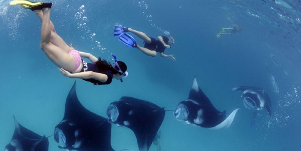 - Vịnh Manta: Giống như một "khu vực kiếm ăn" hơn, nước khá nông, sóng và dòng chảy tương đối êm, thường thấy cá đuối rạn san hô, phù hợp hơn cho người mới bắt đầu lặn với ống thở và người bơi lội bình thường, độ sâu 3-12m, tỷ lệ nhìn thấy cá đuối khá thấp, người mới lặn ống thở, người bơi bình thường, khá yên tĩnh, dòng chảy và sóng đều êm hơn nhiều so với Manta Point.