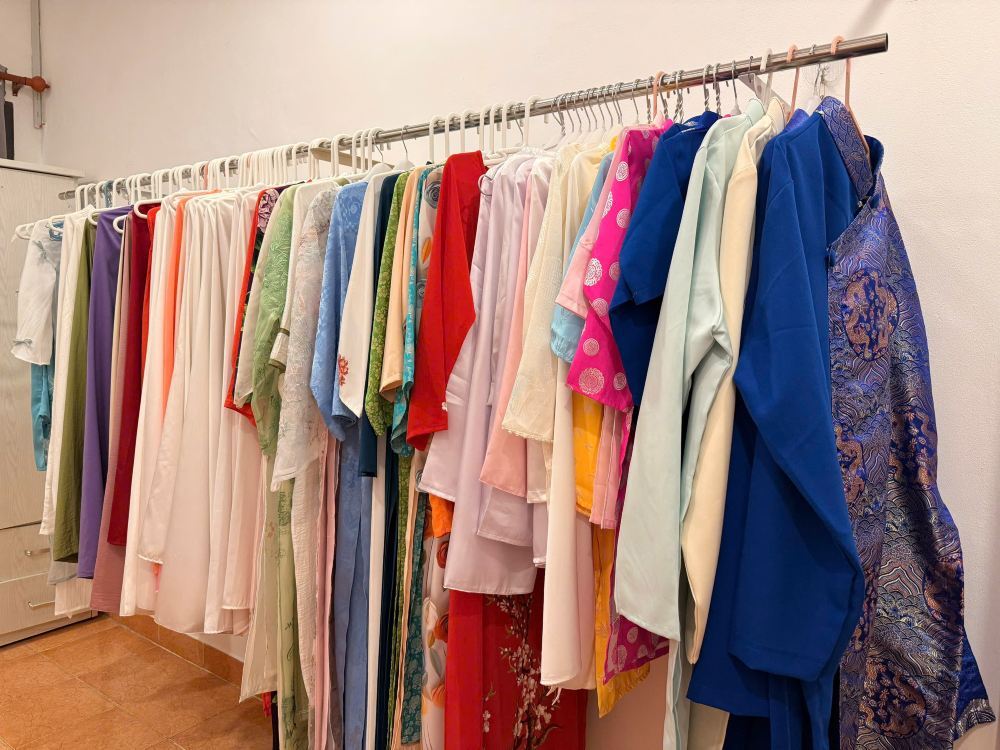 ▲ Bắt đầu hành trình của bạn tại một cửa hàng thời trang nơi bạn sẽ được lựa chọn từ nhiều kiểu Áo Dài thanh lịch. Một nhà tạo mẫu chuyên nghiệp sẽ hỗ trợ bạn chọn bộ trang phục vừa vặn nhất, đảm bảo bạn cảm thấy tự tin và duyên dáng trong bộ trang phục biểu tượng của Việt Nam này.