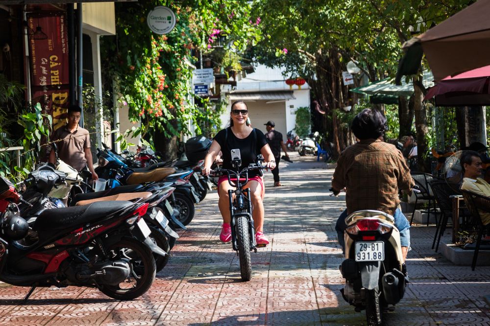 ▲ – Món chính tại Khu Pháp, Đạp xe vào một góc yên tĩnh của khu Pháp cổ ở Hà Nội và thưởng thức bữa tối trong sân của một biệt thự Pháp cũ chỉ có người dân địa phương biết đến. Thưởng thức lẩu nóng hổi, rau xào và chả cá giòn tan.