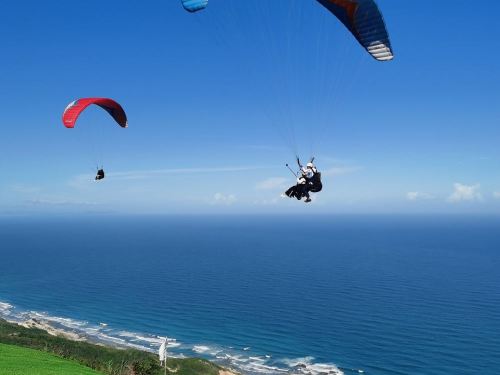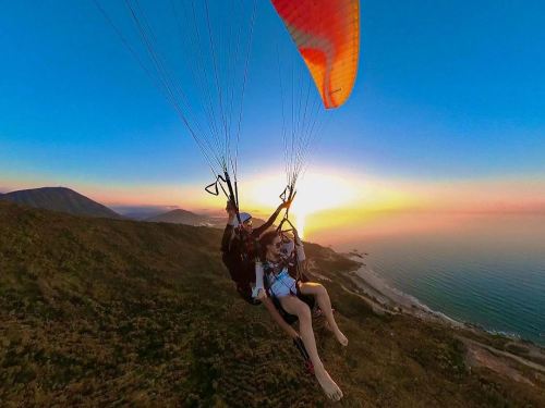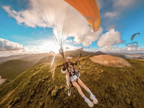 7. Khi cất cánh bằng dù lượn, bạn nhất định phải phối hợp hết sức với huấn luyện viên, hơi nghiêng người về phía trước, dùng lực đồng bộ, kiểm soát trọng tâm cơ thể và chạy hết sức theo hướng huấn luyện viên chỉ dẫn cho đến khi bay khỏi sườn núi;