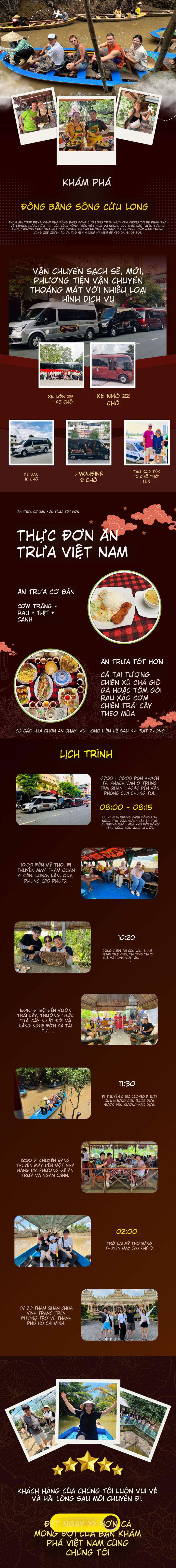 Một cách khó quên để ngắm nhìn Đồng bằng sông Cửu Long khi lái xe dọc theo các tuyến đường tỉnh xuống miền Nam Việt Nam qua những cánh đồng lúa, đồn điền dứa, vườn cây ăn trái và những ngôi làng nhỏ (2 giờ lái xe).