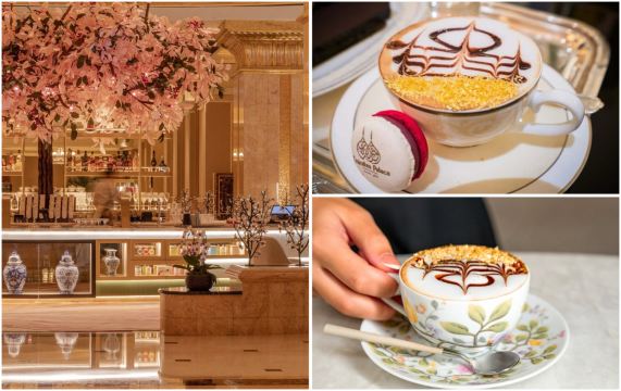 Thưởng thức cà phê Cappuccino đặc biệt được phủ lớp vàng 24K, kèm theo bánh macaron ngọt ngào hoặc một lát bánh ngọt — sự sang trọng hoàn hảo.