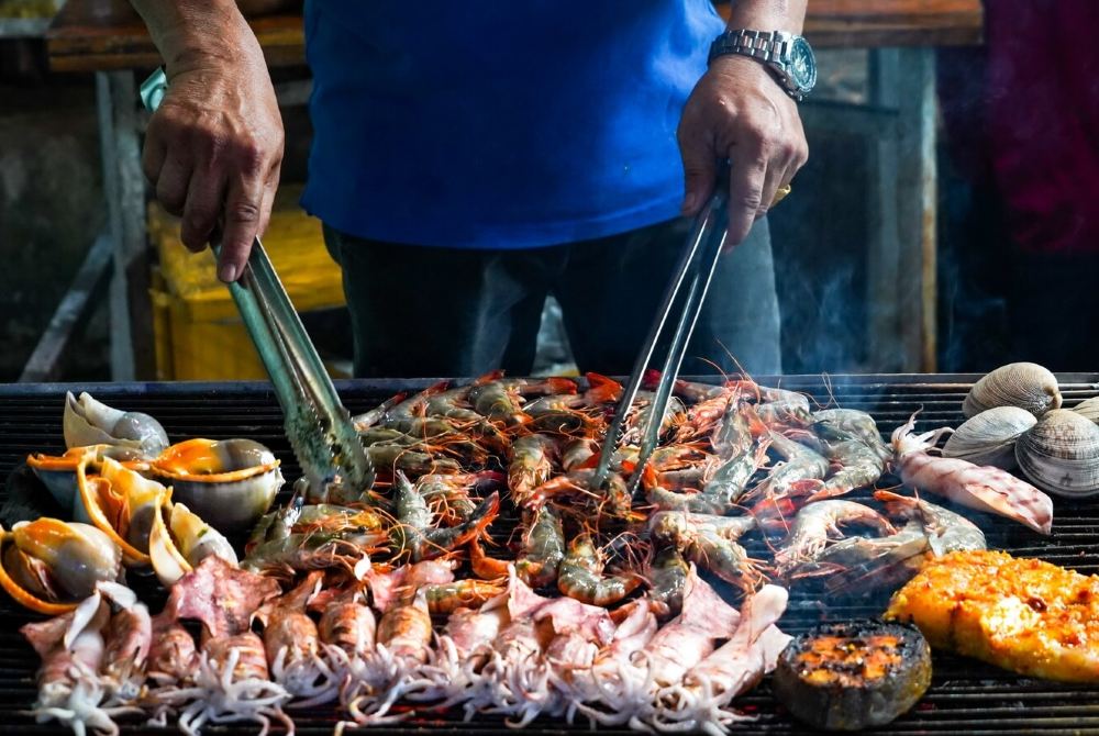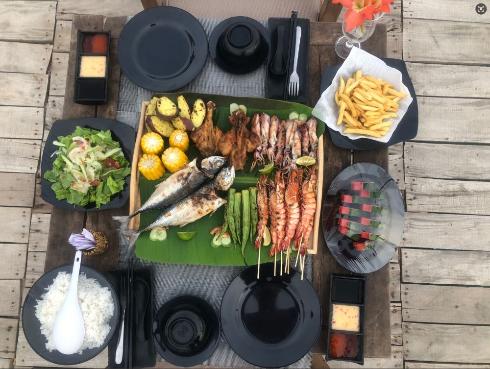●17:00: Thưởng thức bữa tối BBQ tại quán bar bãi biển hòn Mây Rút
