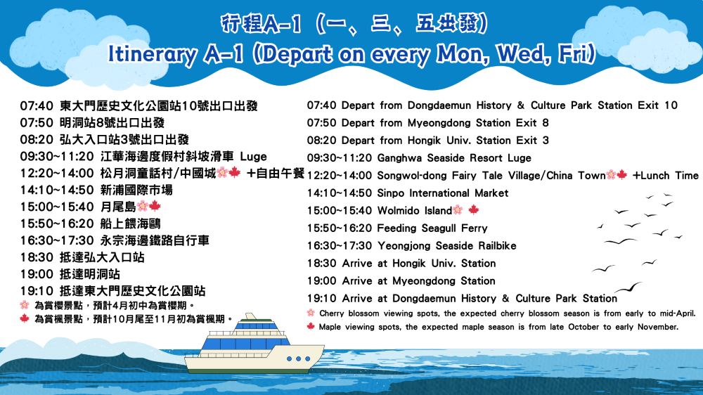 Các tour du lịch một ngày thường được hướng dẫn bằng hai ngôn ngữ.