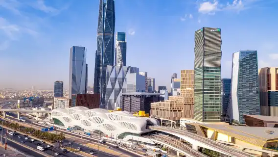 Chiêm ngưỡng hình dáng lấy cảm hứng từ hoa hồng sa mạc của Nhà thờ Hồi giáo KAFD, được thiết kế bởi Omrania
