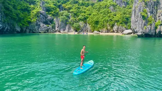 Đi thuyền kayak qua Hang Sáng và Hang Tối, ngắm nhìn loài voọc Cát Bà quý hiếm.